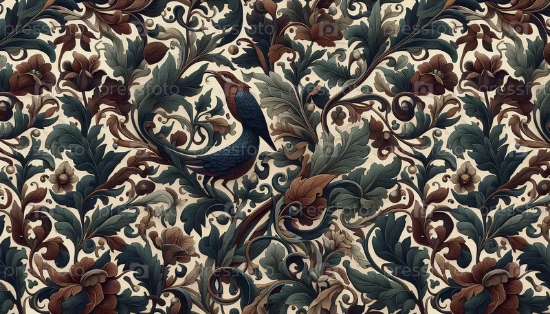 Уильям Моррис ботанические узоры винтажный дизайн без швов, Ai generated image