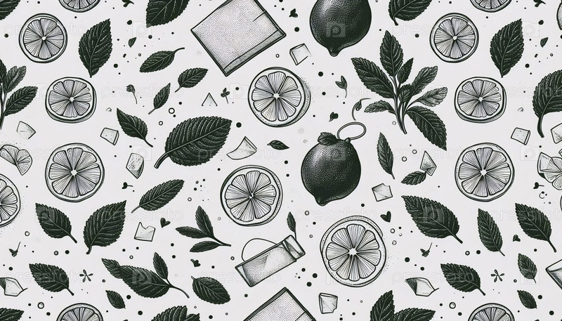 Минималистский рисунок линейного искусства цитрусовых и трав без швов, Ai generated image