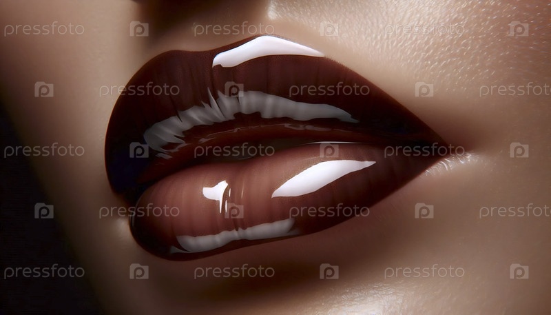 Применение блестящей коричневой помады, Ai generated image