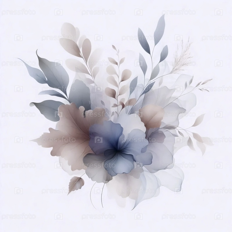 Абстрактная акварельная ботаническая печать в стиле boho, Ai generated image
