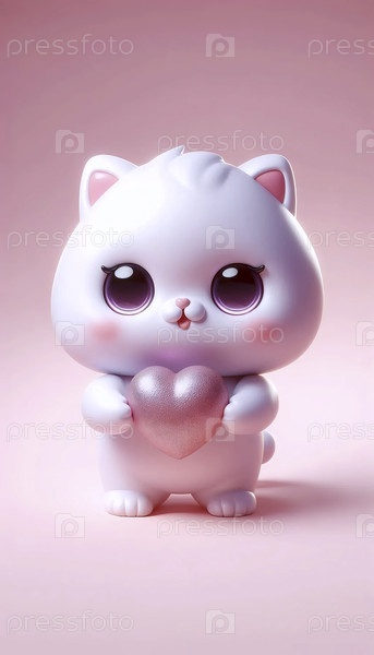 3D-кавайский кошачий персонаж A holding a heart, Ai generated image