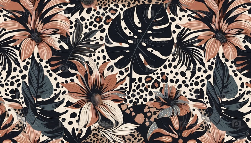 Леопард Монстр A Flower Seamless Pattern, Ai создал изображение