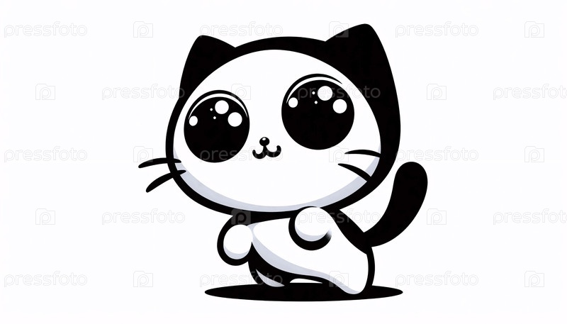 Черно-белая иллюстрация кота кавайи, Ai generated image