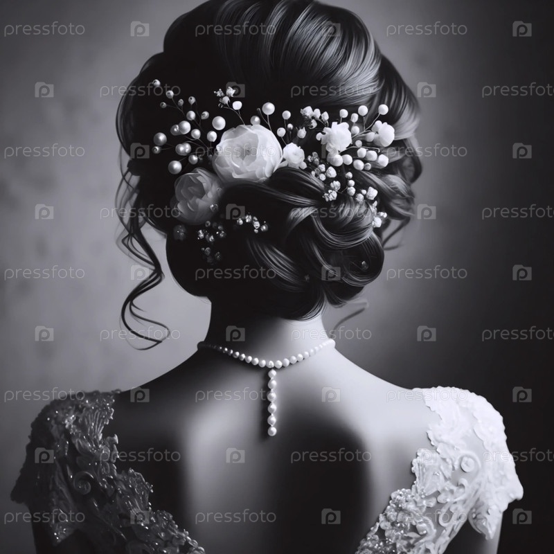 Винтажная невеста возвращается со сложной прической, Ai generated image