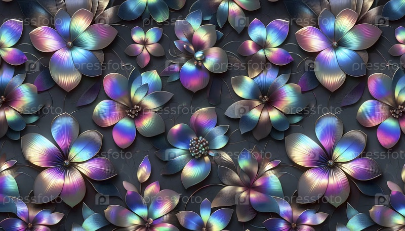 Голографический цветочный цифровой бумажный бесшовный шаблон, Ai generated image