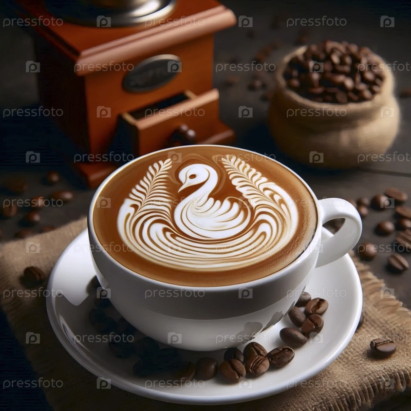 Специальный кофе латте со сложным искусством, Ai generated image