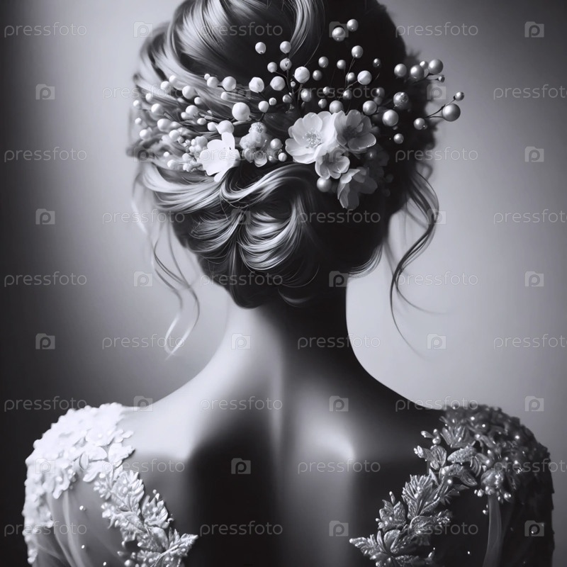 Винтажная невеста возвращается со сложной прической, Ai generated image