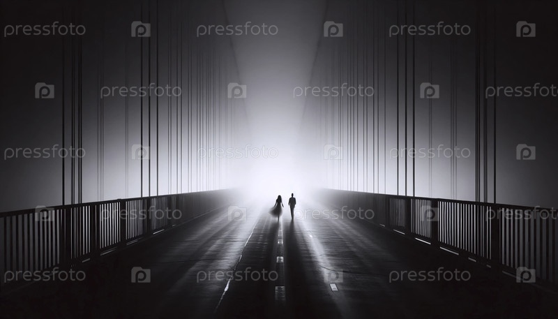 Размытый пар, идущий по мосту ночью, Ai generated image