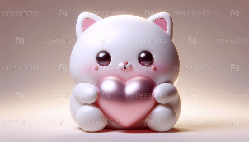 3D-кавайский кошачий персонаж A holding a heart, Ai generated image