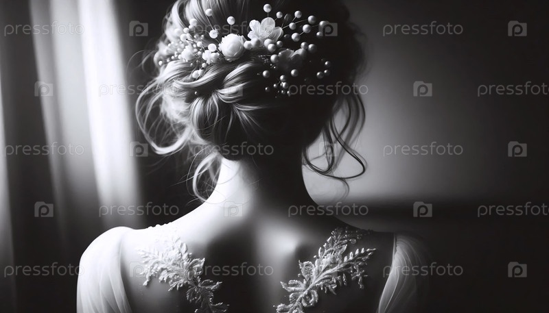 Винтажная невеста возвращается со сложной прической, Ai generated image