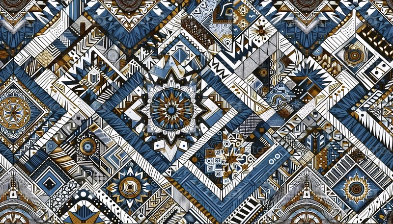 Синий африканский шаблон с геометрическими племенными мотивами в стиле Анкары бесшовный дизайн, Ai generated image