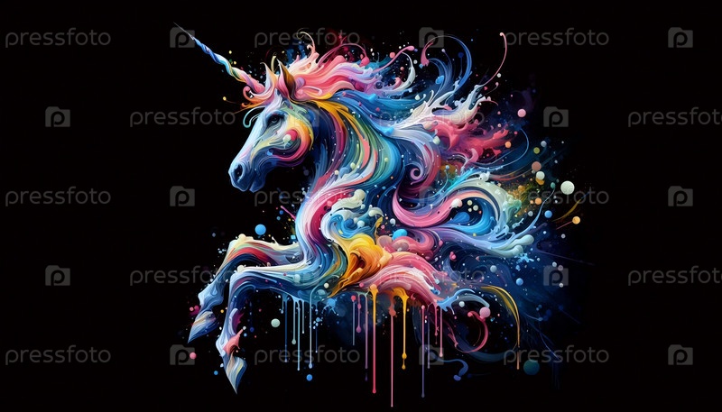Единорог в щелчках магической краски, Ai generated image