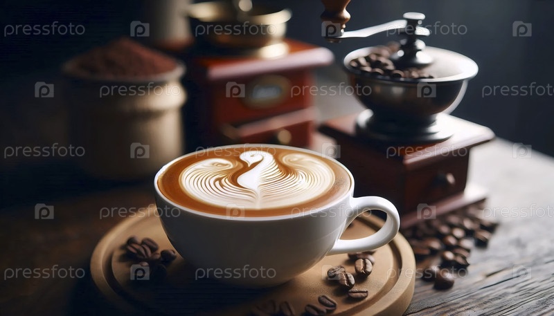 Специальный кофе латте со сложным искусством, Ai generated image