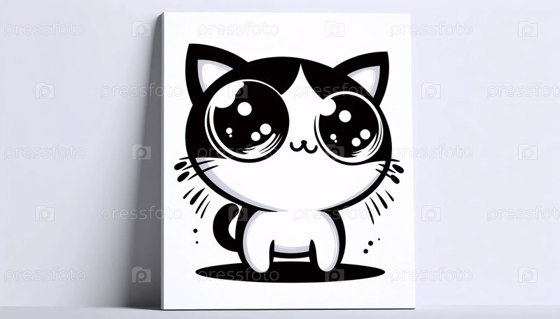 Черно-белая иллюстрация кота кавайи, Ai generated image