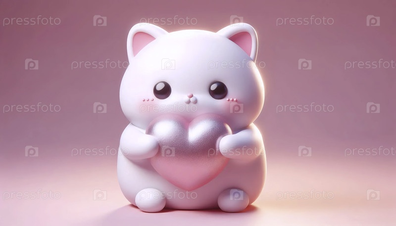 3D-кавайский кошачий персонаж A holding a heart, Ai generated image