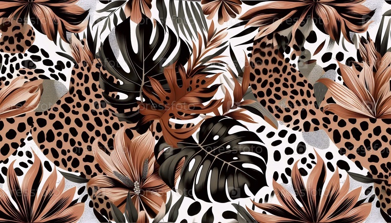 Леопард Монстр A Flower Seamless Pattern, Ai создал изображение