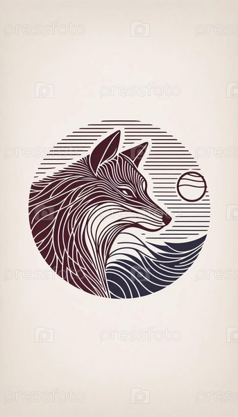 Стилизованный портрет линейного искусства лисы, Ai generated image