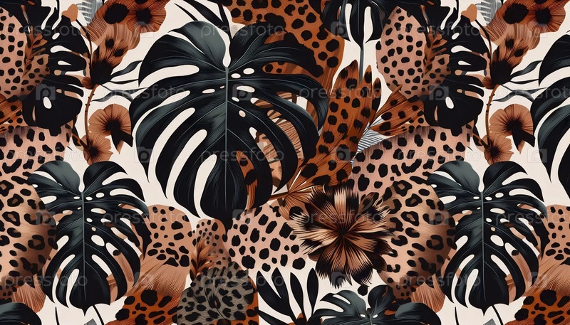Леопард Монстр A Flower Seamless Pattern, Ai создал изображение