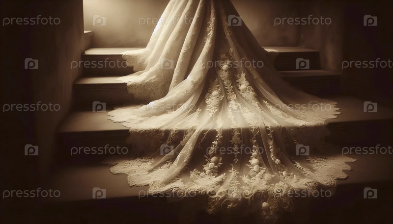 Сепия тон свадебное платье деталь поезда, Ai generated image