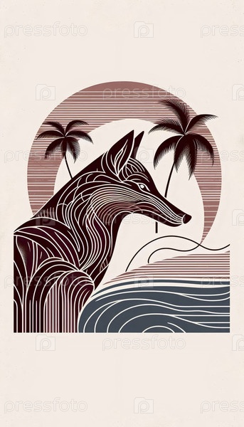 Стилизованный портрет линейного искусства лисы, Ai generated image
