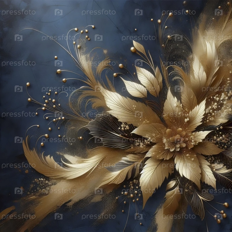 Абстрактная живопись с золотым брызгом, Ai generated image