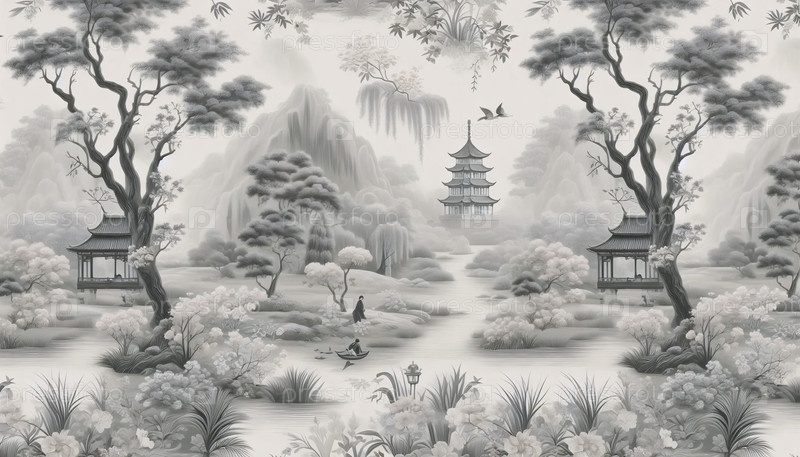 Chinoiserie French Toile Стиль нейтрального цветочного луга, Ai generated image