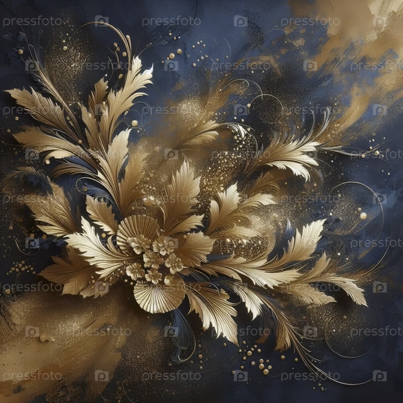 Абстрактная живопись с золотым брызгом, Ai generated image