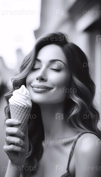 Винтажный портрет наслаждения мороженым, Ai generated image