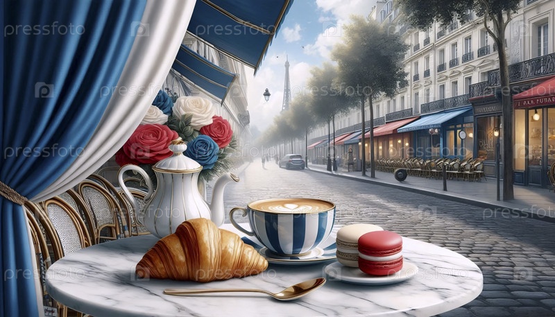 Французский флаг в парижской пекарне и кафе культуры, Ai generated image