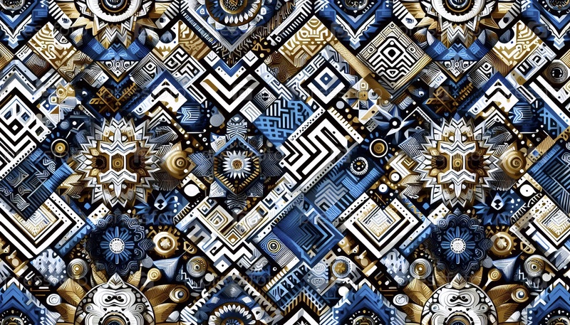 Синий африканский шаблон с геометрическими племенными мотивами в стиле Анкары бесшовный дизайн, Ai generated image