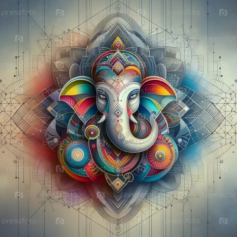 Господь Ганеша с геометрическими узорами, Ai generated image A