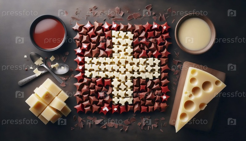Швейцарский флаг из шоколада и сыра, Ai generated image