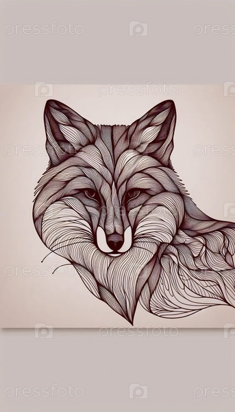Стилизованный портрет линейного искусства лисы, Ai generated image