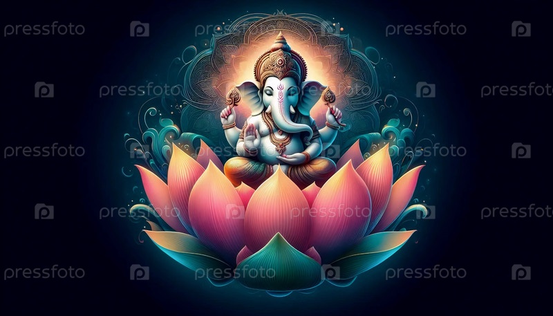 Господь Ганеша сидит на лотосе, Ай создал изображение