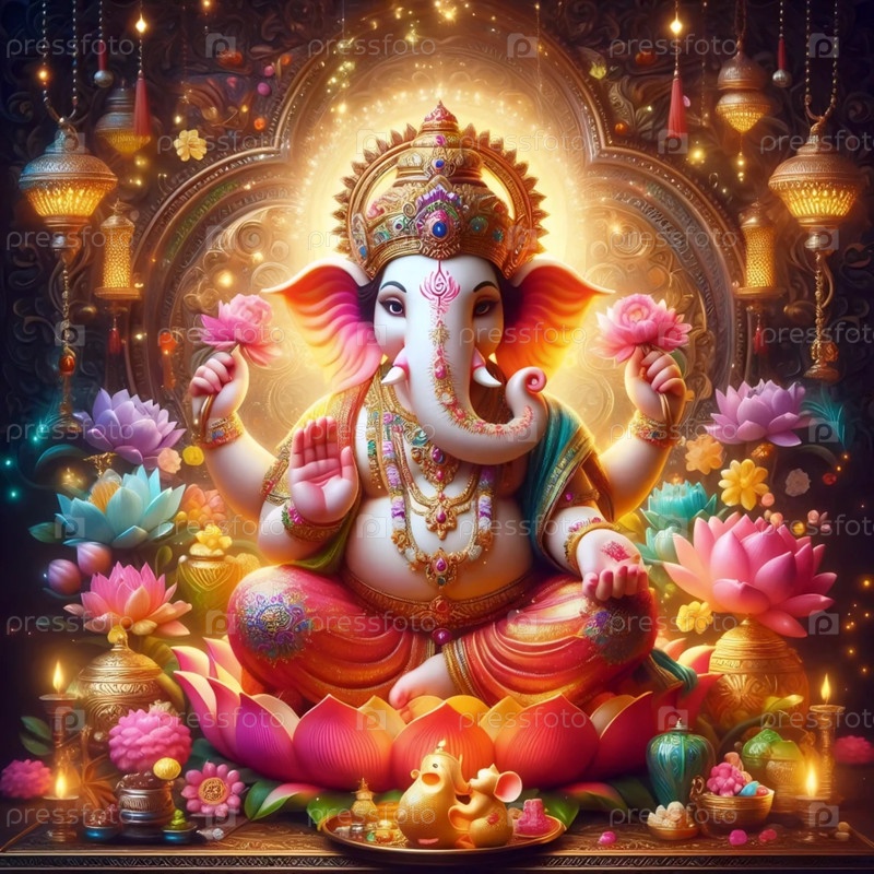 Господь Ганеша с поднятым стволом, Ai generated image