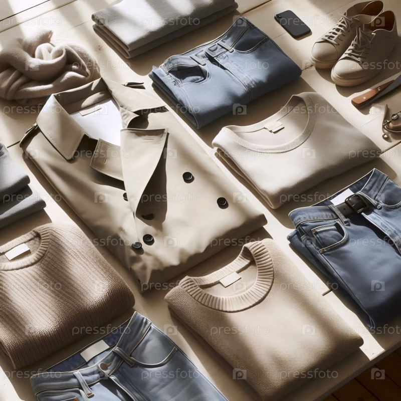Курительный гардероб капсулы A flatlay, Ai generated image
