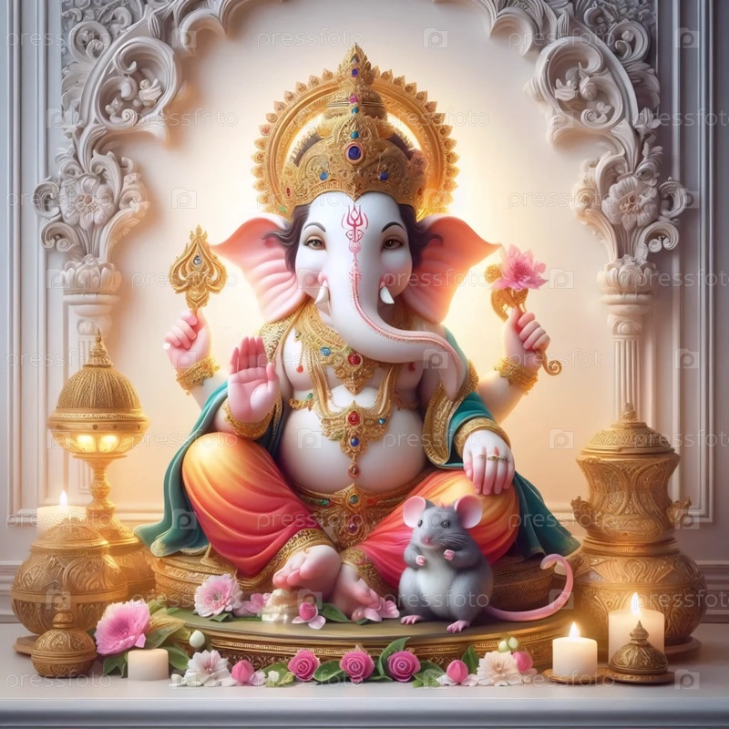Господь Ганеша со своей мышью Ваханой, Ai generated image A