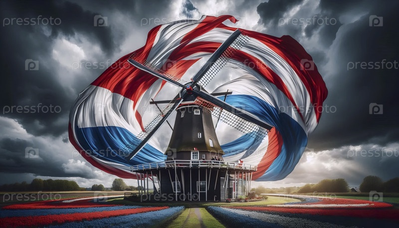 Голландский флаг, плавающий на историческом ветровом парусе Ai generated image