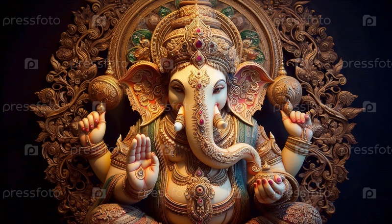 Господь Ганеша с традиционными орнаментами, Ai generated image A