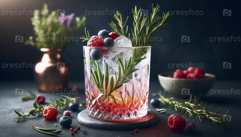 Сложный безалкогольный коктейль в кристаллическом стакане, Ai generated image
