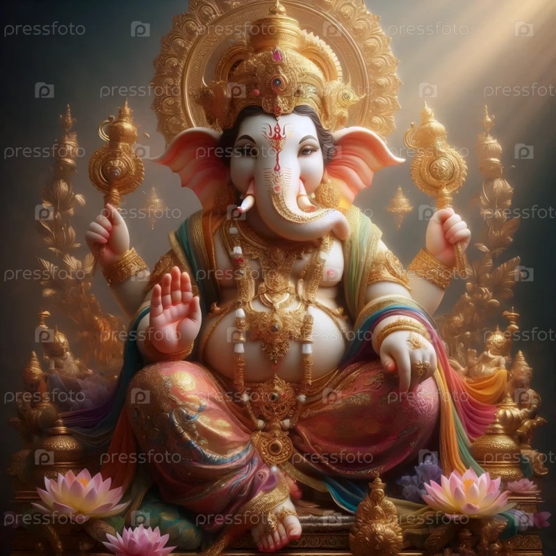 Господь Ганеша с традиционными орнаментами, Ai generated image A