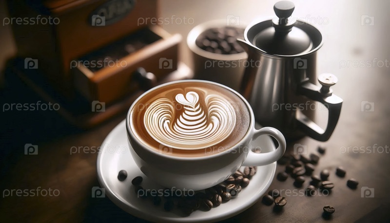 Специальный кофе латте со сложным искусством, Ai generated image