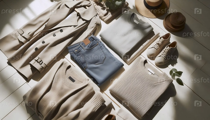 Курительный гардероб капсулы A flatlay, Ai generated image