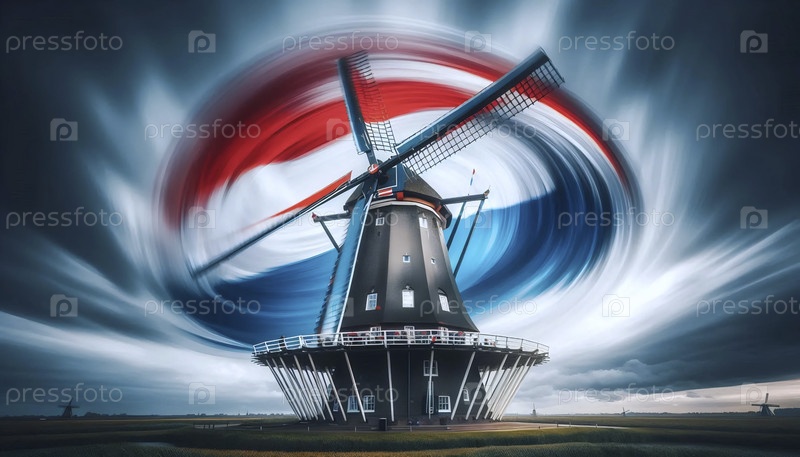 Голландский флаг, плавающий на историческом ветровом парусе Ai generated image