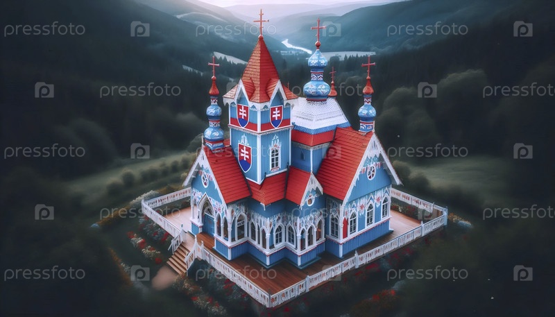 Словацкий флаг в народной деревянной архитектуре, Ai generated image A
