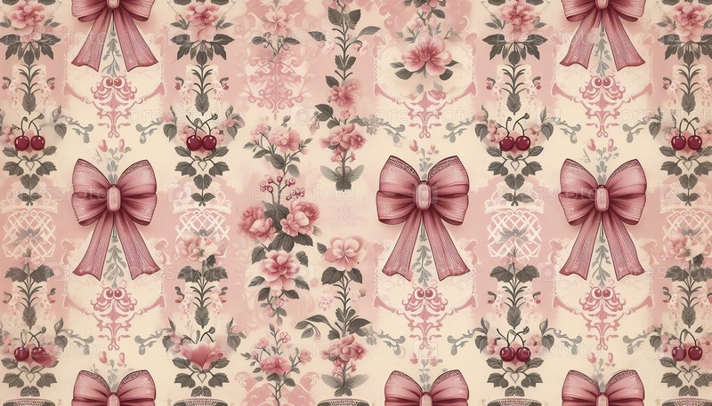 Vintage Coquette Cherry pattern pink bow Chinoiserie retro girly shabby chic, Ai создал изображение