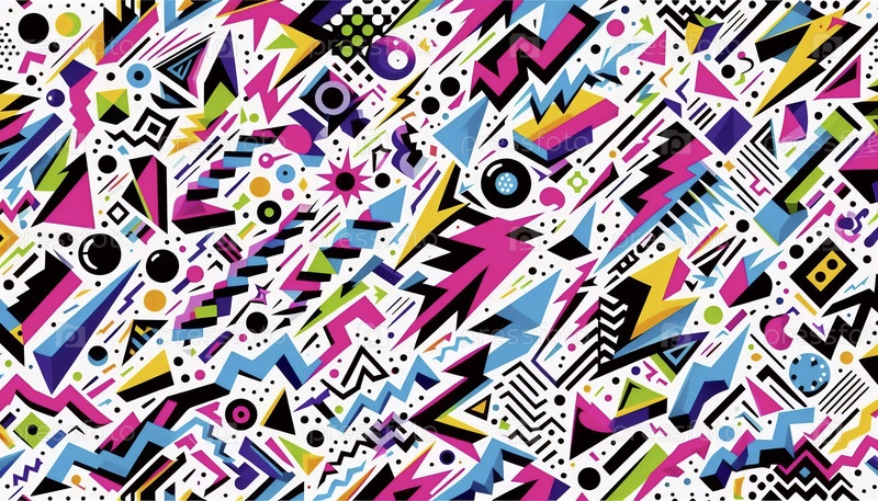 Смелый геометрический бесшовный шаблон в стиле Мемфиса, Ai generated image