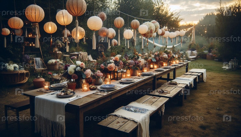 Партия в саду Бохо, Ai generated image