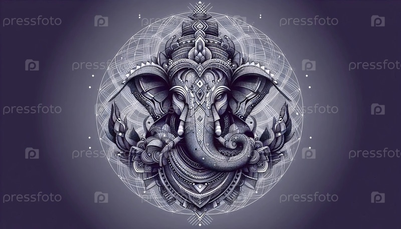 Господь Ганеша с геометрическими узорами, Ai generated image A