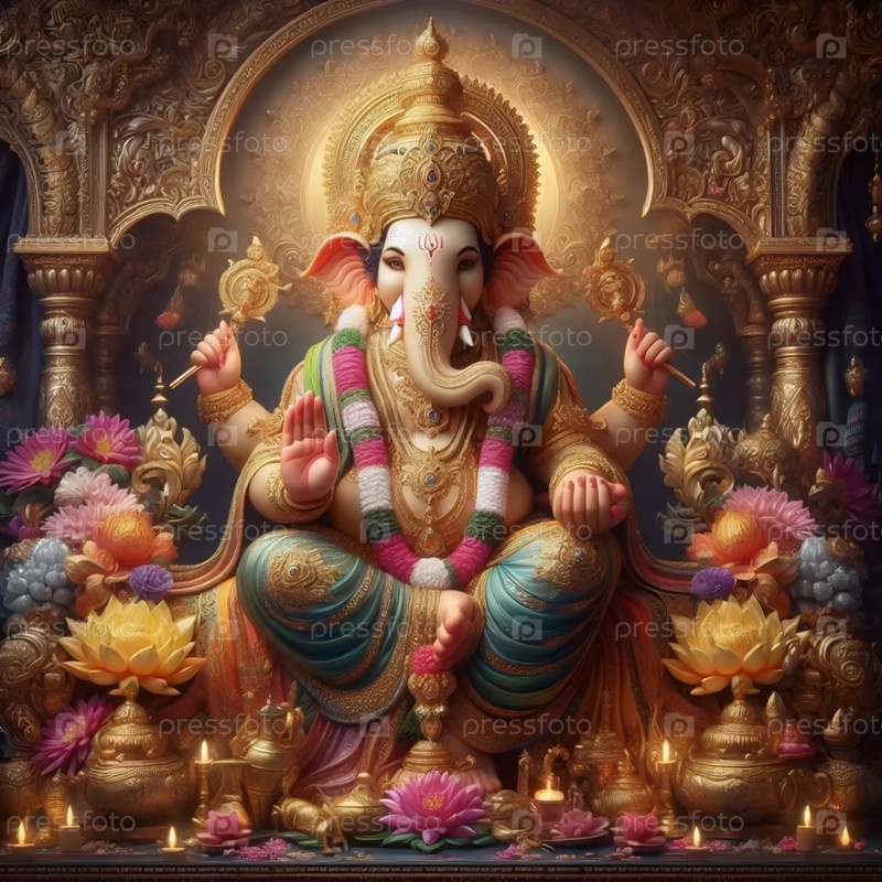 Господь Ганеша с традиционными орнаментами, Ai generated image A
